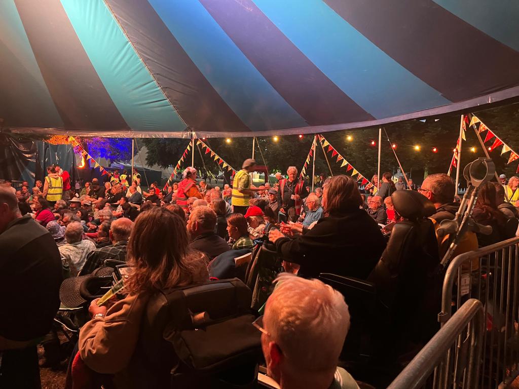 We had a wonderful time performing THE MISTAKE twice at Greenbelt Festival this weekend – in a big-top tent! About 400 people crammed in on each day, spilling outside as well…and despite some of the tent sides being left open to help cool everyone down, and despite noise coming in from music tents and from kids playing and shouting, the audience was so concentrated – pin-drop attention they gave us. Huge thanks to all who came and sat on the ground or propped themselves up on small portable seats or just stood at the back … and huge thanks to everyone at Greenbelt Festival who makes this unique annual event possible. I managed to speak to a few people afterwards and one older Japanese woman said – ‘It was so moving to see 400 British people sitting down to watch this story about Hiroshima.’ That comment really makes all the effort worthwhile…this is why we do it…